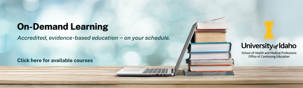 The mission of the University of Idaho, School of Health and Medical Professions Office of Continuing Education is to advance lifelong learning by delivering accessible, innovative, and high-quality programs for healthcare professionals. In collaboration with local, regional, and national partners, we promote educational opportunities that integrate scientific knowledge, evidence-based practice, and interdisciplinary care to strengthen the skills and performance of the healthcare community.